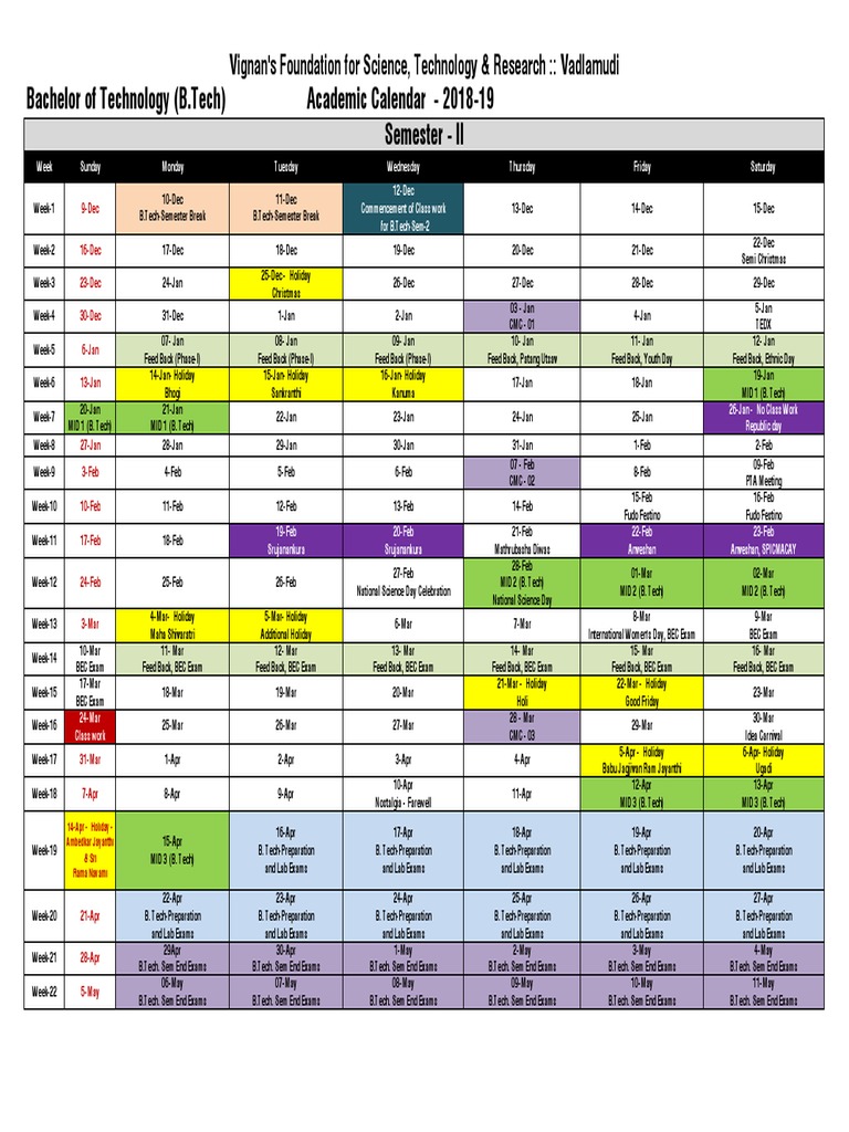 1.b.tech Academic Calendar Sem II 2018 19 PDF Academic Term Festival