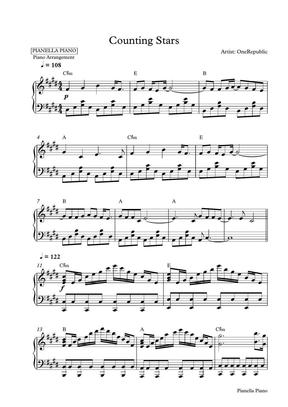 Counting Stars Piano Sheet Music - Download (free) or order counting stars sheet music from the band onerepublic arranged for piano and vocal. Share, download and print free sheet music of counting stars one republic for piano, guitar, flute and more with the world's largest community of. Browse our 70 arrangements of counting stars. sheet music is available for piano, voice, guitar and 40 others with 28 scorings and 4 notations. Get counting stars sheet music by onerepublic as a digital notation file for piano/keyboard in e major (transposable).