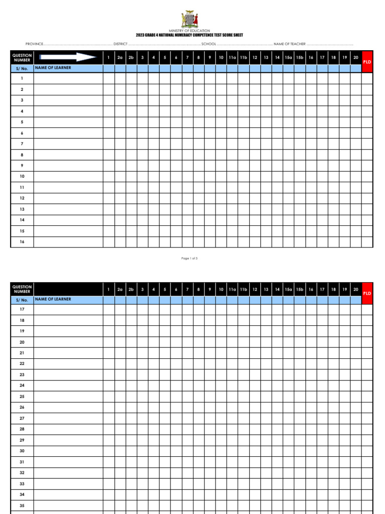Numeracy Grade 4 Score Sheet Download Free PDF Numbers Area