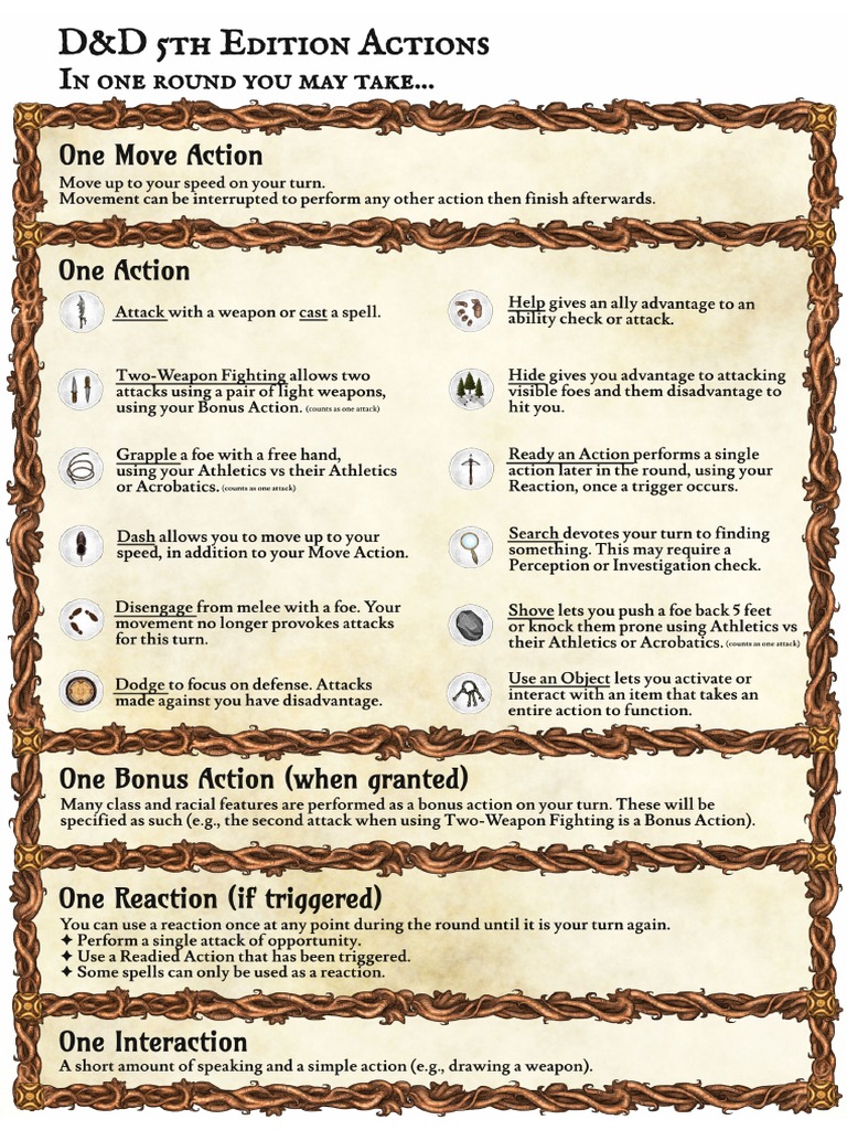 DnD Actions Quick Reference PDF Dungeon Masters Guild, 48 OFF