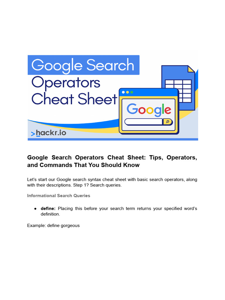 Google Search Operators Cheat Sheet Hackr Io PDF PDF Search