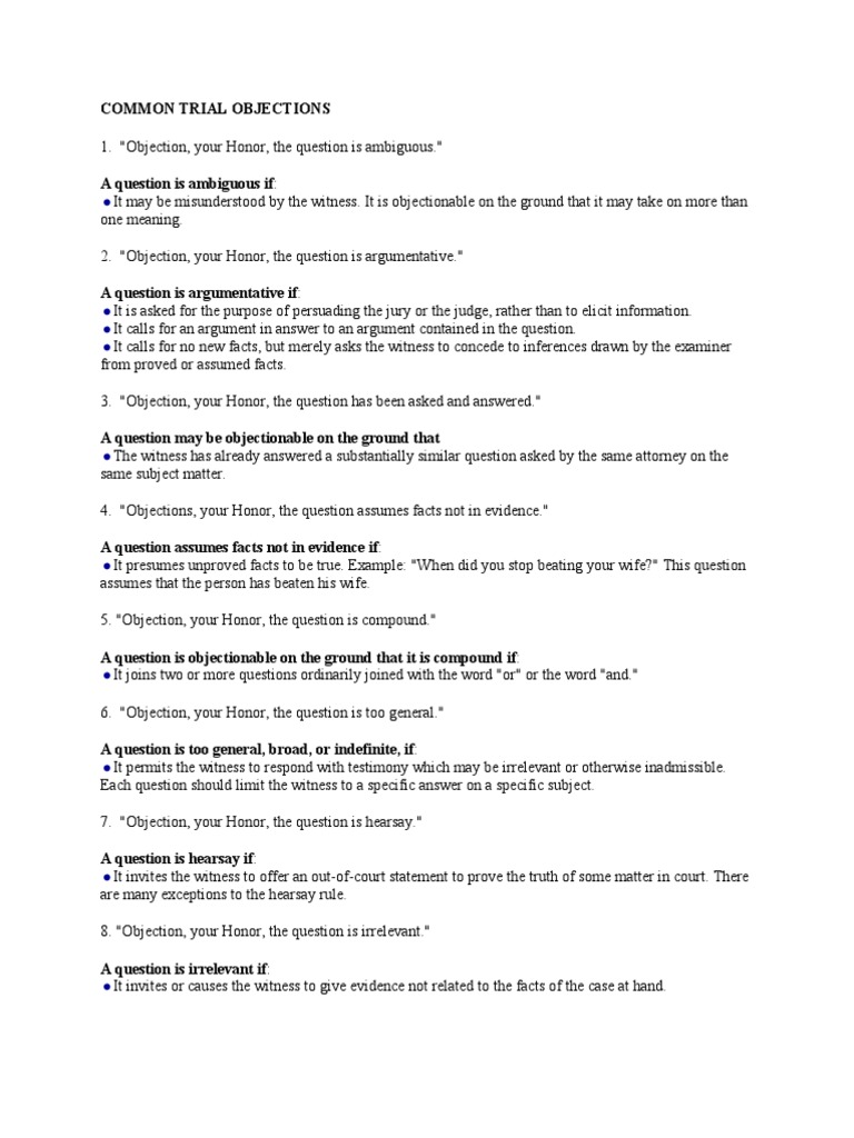 Trial Objections Cheat Sheet New York zonyonahdefrees