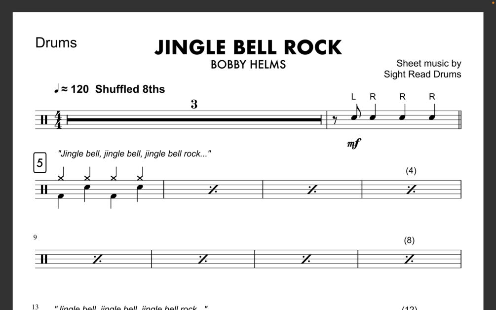 Jingle Bell Rock Drum Sheet Music For Beginners