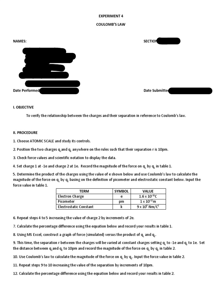 Experiment4 Coulomb's Law PDF Electric Charge Physics