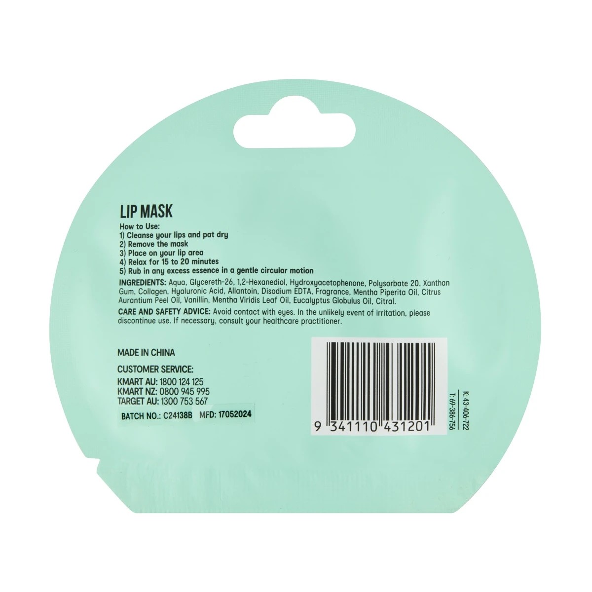 Lip Sheet Mask, Collagen & Cool Mint Scented OXX Skincare Target
