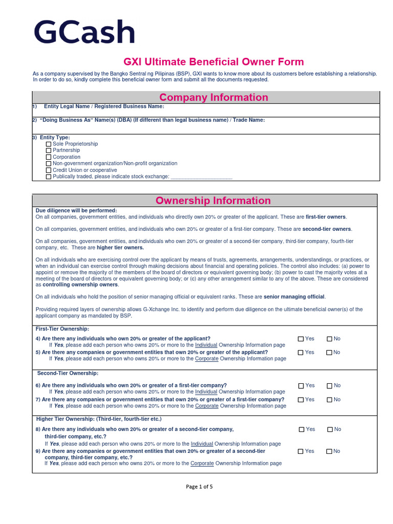 Beneficial Ownership Form Template