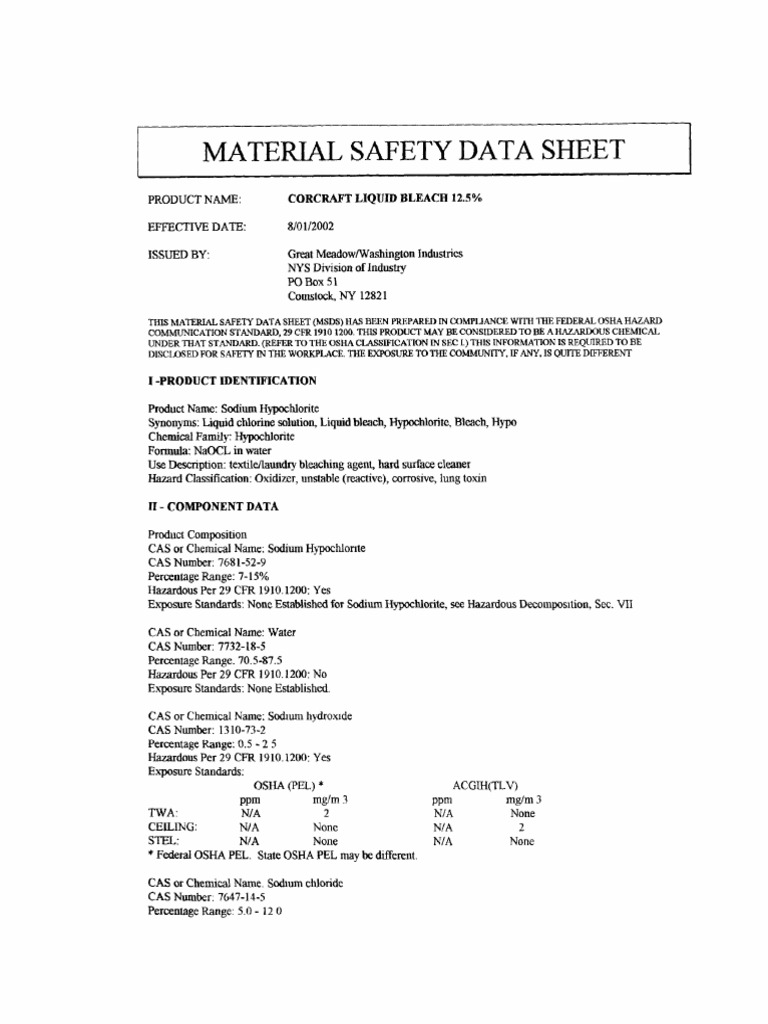 Material Safety Data Sheet Zonrox Bleach at Lori Faul blog