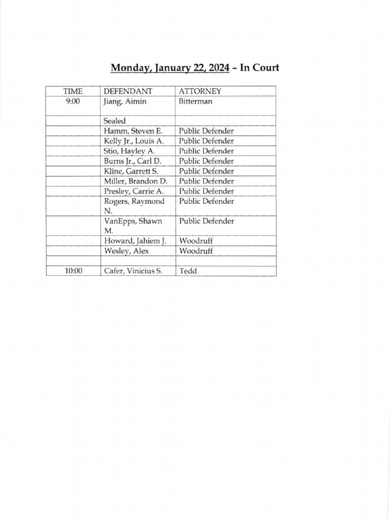 Jefferson County Court Calendar Jan. 22, 2024 PDF