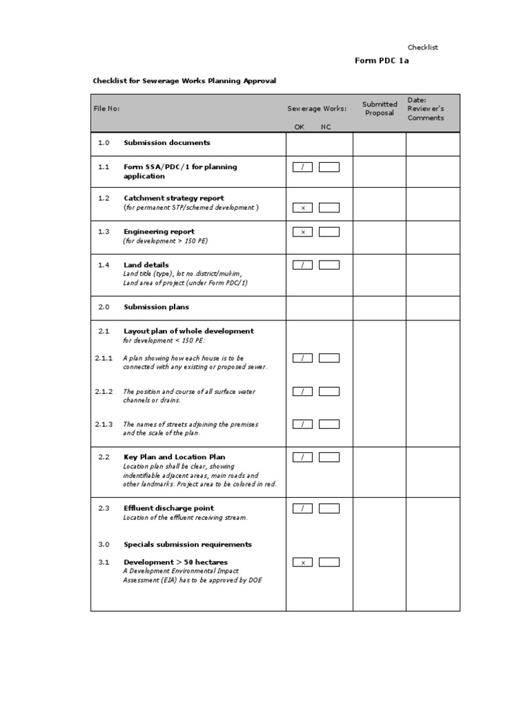 PDC 1 Checklist PDF Sanitary Sewer Environmental Impact Assessment