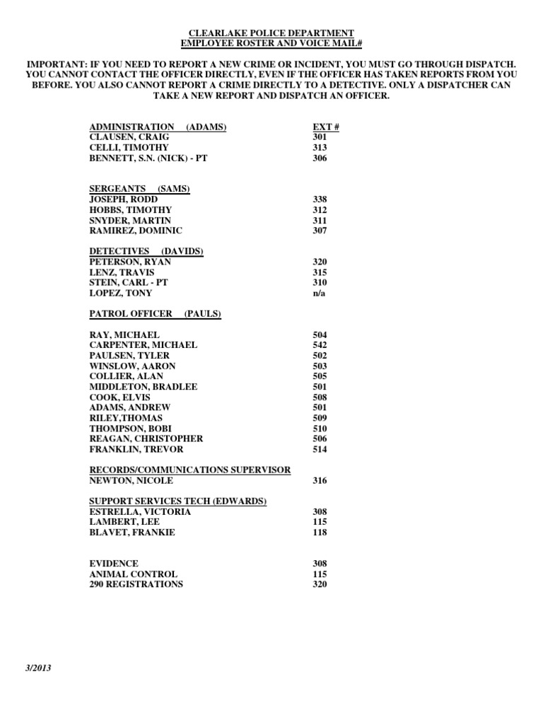 Clearlake Police Department Roster PDF