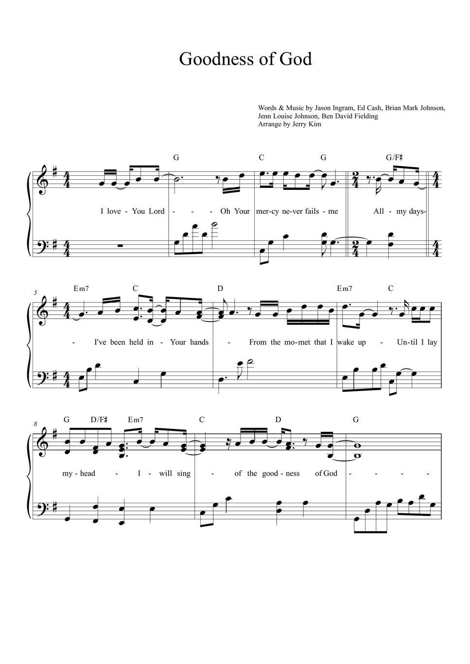 Goodness of god (performed by jenn johnson) i love you, lord oh your mercy never fails me all my days, i’ve been held in. Browse our 39 arrangements of goodness of god. sheet music is available for piano, voice, guitar and 16 others with 15 scorings and 4. Words and music by jenn johnson, ed cash, jason ingram, ben fielding and brian johnson ccli song # 7117726. Get free goodness of god sheet music by bethel music and jenn johnson as a digital notation file for piano/keyboard in ab major (transposable). Share, download and print free sheet music of goodness of god bethel music for piano, guitar, flute and more with the world's largest.