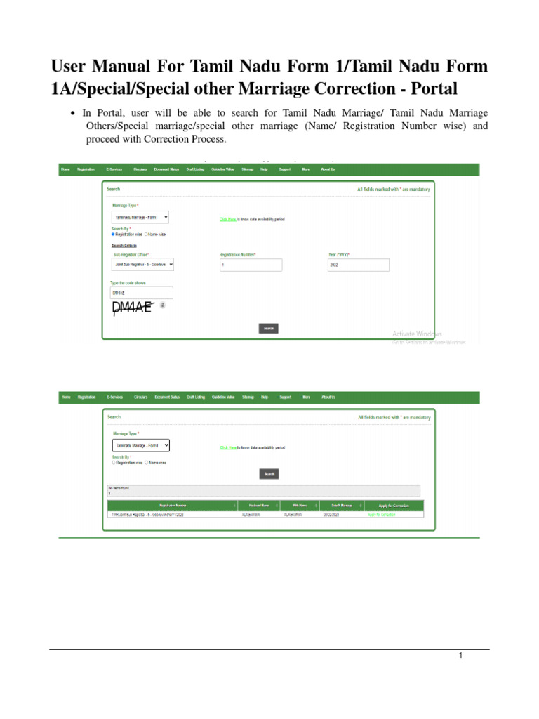 User Manual Tamilnadu Form 1,1A, Special and SPL Other Marriage